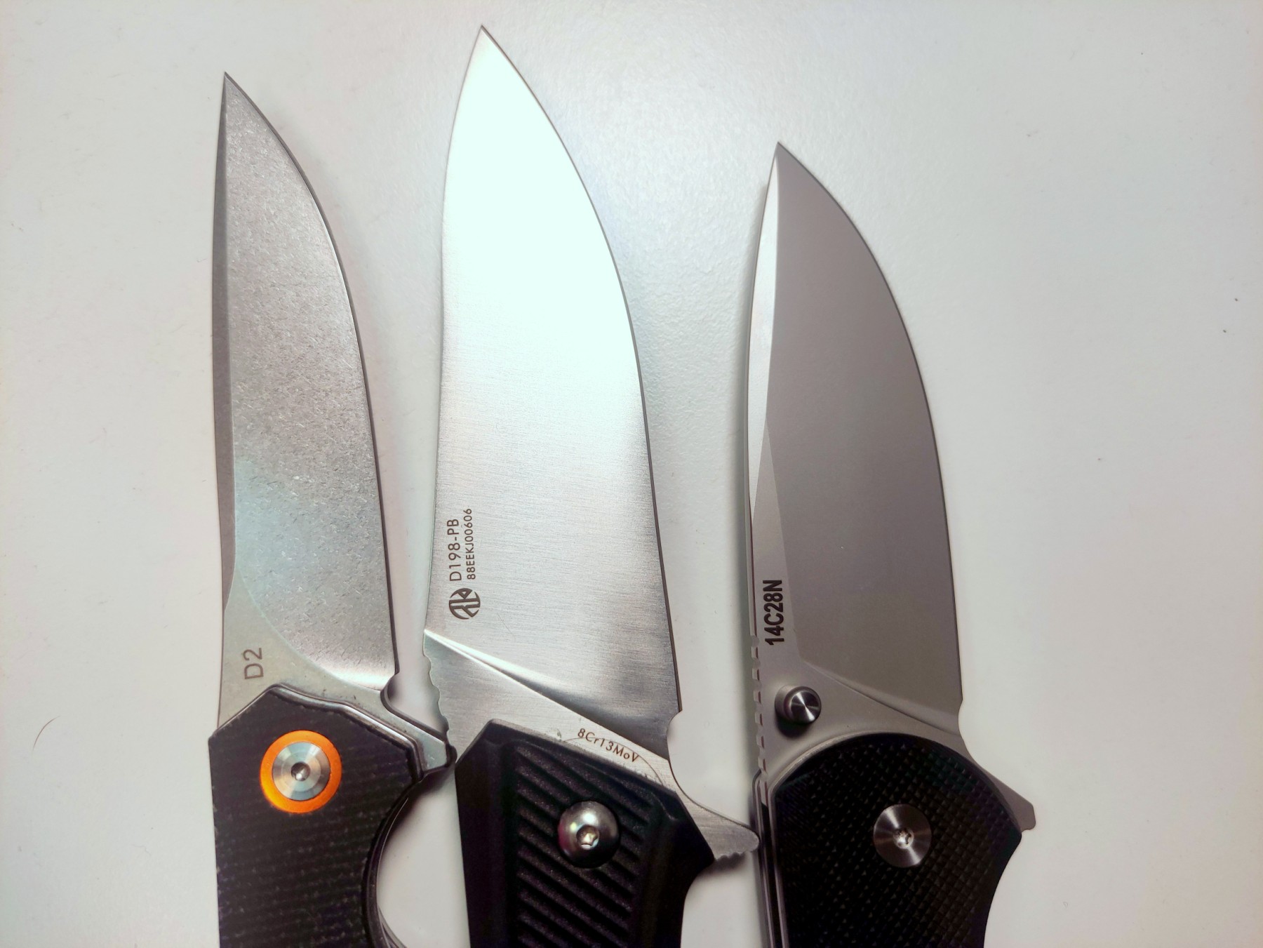 8Cr13Mov /9Cr18Mov - Неръждаеми стомани с 0.8%/0.9% въглерод, произведени в Китай. Те имат ниска цена и са отлични стомани за първи джобен нож, с лесна заточка, прилична износоустойчивост и корозионна устойчивост.