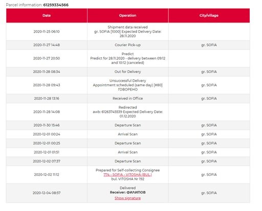 Техния начин на описване на ситуацията: "Неуспешнa доставка