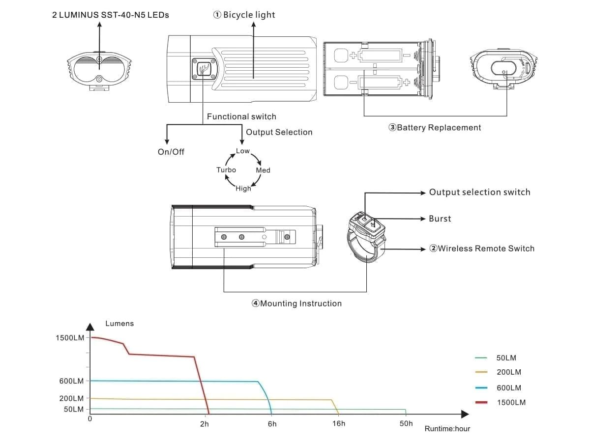 - Окомплектовка: Стойка за велосипед, безжичен превключвател, батерия CR1632, подложка за монтаж на велосипед (тънка/дебела), резервен О-пръстен