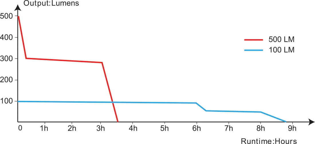 - Режими на осветяване: Две нива на яркост плюс стробоскоп
