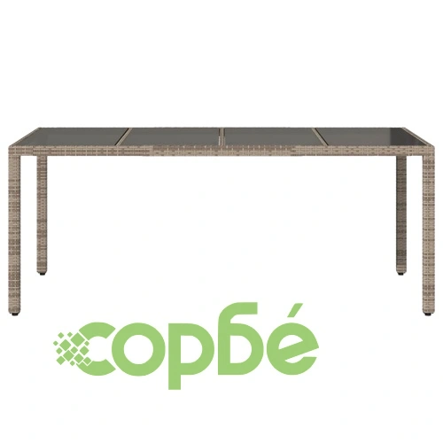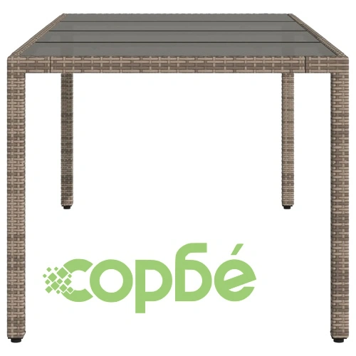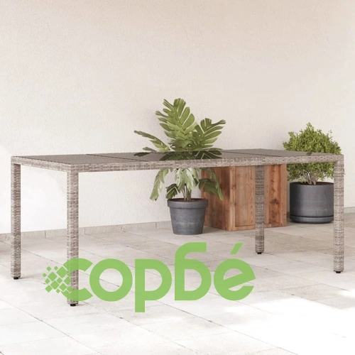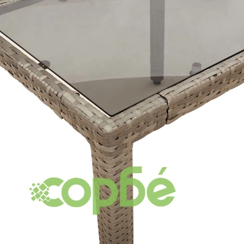 Тази градинска маса със стъклен плот, проектирана с изчистени и семпли линии, е отличен избор за вашата градина, вътрешен двор и друго външно пространство. Издръжлив материал: PE ратан, известен също като полиратан, е здрав синтетичен материал с малко необходима поддръжка, който прилича на естествен ратан. Той е лек, лесен за почистване и често се използва за външни мебели поради своята издръжливост и устойчивост на атмосферни влияния.Стъклен плот: Плотът на външната маса е изработен от здраво и издръжливо закалено стъкло, което улеснява почистването с влажна кърпа и добавя нотка елегантност към вашето външно пространство.Здрава и стабилна рамка: Стоманената рамка с прахово покритие гарантира, че градинската мебел е здрава и стабилна за ежедневна употреба на открито. Добре е да се знае:За да сте сигурни, че вашите външни мебели ще останат красиви, ви препоръчваме да ги защитите с водоустойчиво покривало.