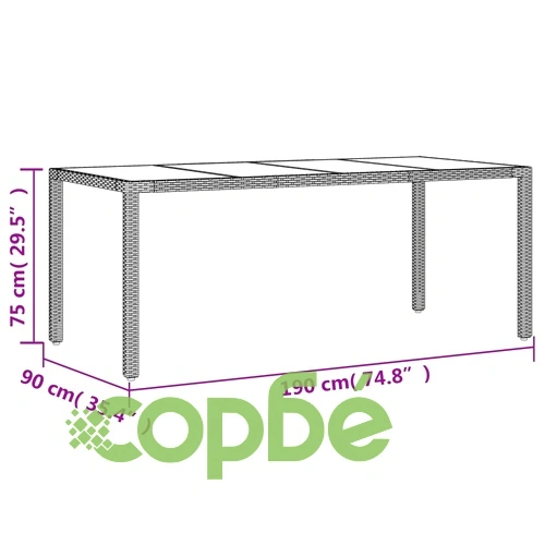 Градинска маса със стъклен плот черен 190x90x75 см полиратан – промо цена 386.00 лв. (197.36€)