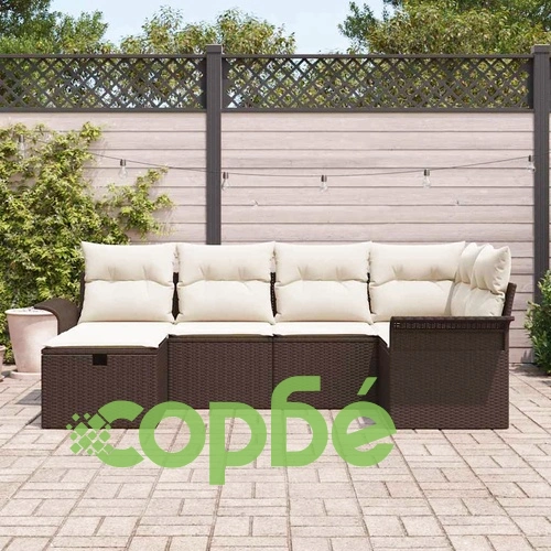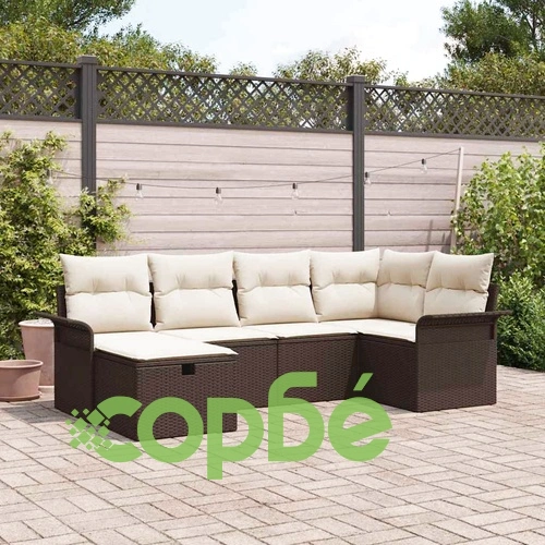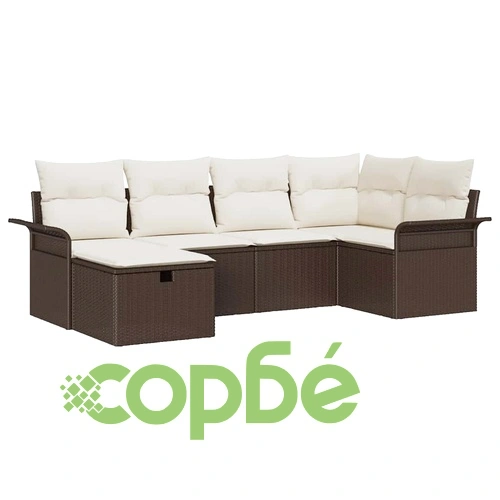 Градински диван комплект 6 части с възглавници кафяв полиратан 242.5x132.5x85 см – сега само за 855.00 лв. (437.15€)