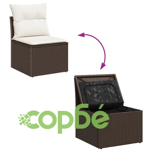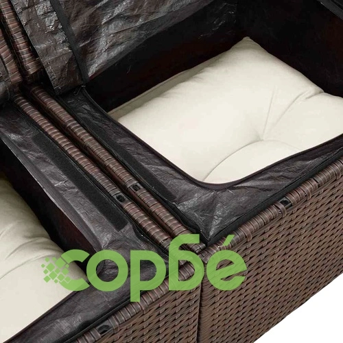 Всеки модул разполага с вградена функция за съхранение с водоустойчива торба 📦. Това ви позволява да съхранявате възглавници, покривала или други градински аксесоари директно в мебелите, спестявайки място и поддържайки реда.