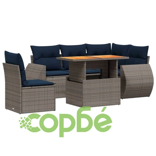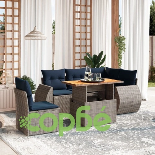 Градински диван комплект 6 части с възглавници PE ратан сив – промо цена 1,021.00 лв. (522.03€)