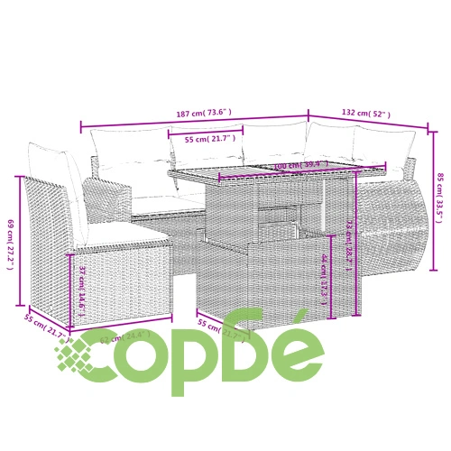 Почистване: Използвайте мека кърпа и мек препарат за почистване на PE ратана. Калъфите на възглавниците могат да се перат в пералня.