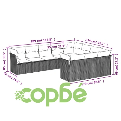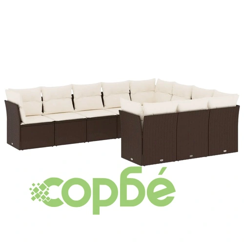 Градински комплект диван с възглавници 10 части кафяв полиратан – вземи за 1,184.00 лв. (605.37€)