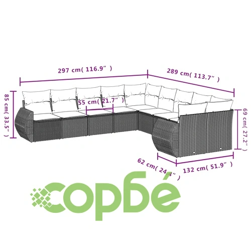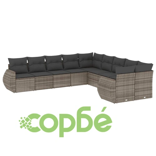 Градински комплект диван с възглавници 10 части сив полиратан – промо цена 1,158.00 лв. (592.08€)