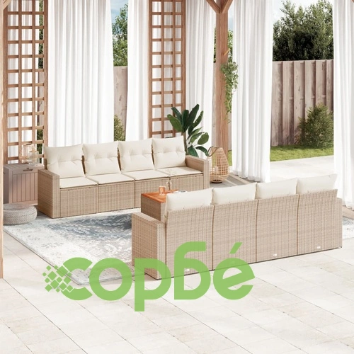 Градински комплект диван с възглавници 9 части бежов полиратан – сега само за 1,110.00 лв. (567.53€)