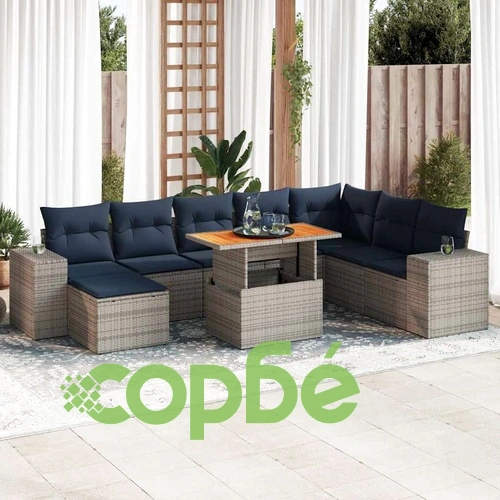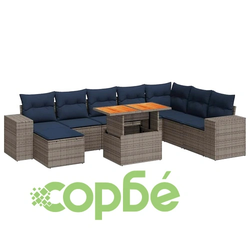 Градински комплект диван с възглавници 9 части сив полиратан – само за 1,344.00 лв. (687.18€)