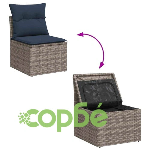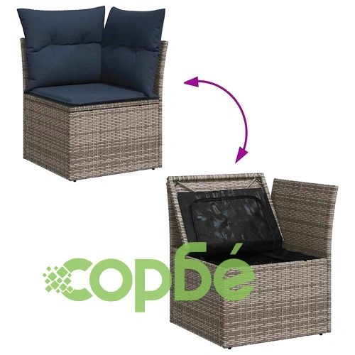 Този 9-частен градински комплект диван съчетава стил, функционалност и издръжливост в едно. Модулната конструкция позволява гъвкаво разположение според нуждите ви, а вградените места за съхранение осигуряват практичност. Устойчивостта на UV лъчи и атмосферни влияния гарантира дълготрайна употреба, докато възможността за пране на калъфите улеснява поддръжката.