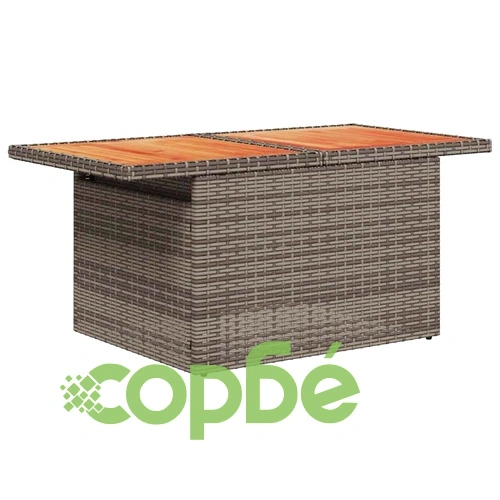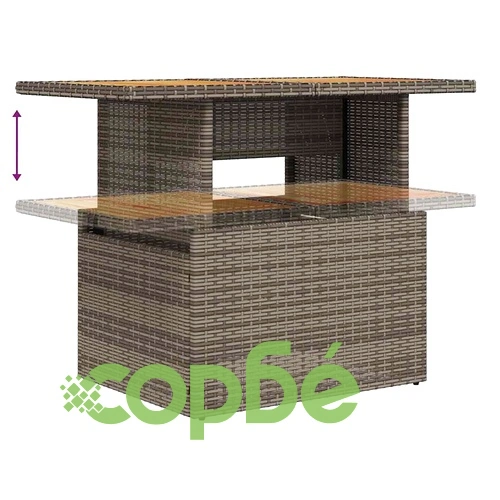 Регулируем плот: 📏 Плотът може да се повдигне, за да направи масата по-висока, което трансформира външната маса от маса за кафе в маса за хранене. Идеална е за гости или за хранене навън.
