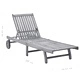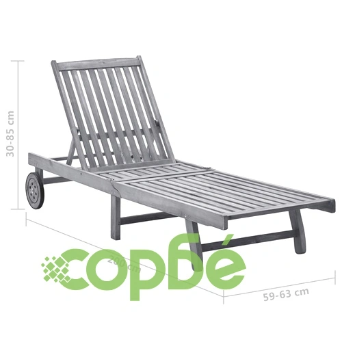 Отпуснете се и релаксирайте в градината или във вътрешния двор на този удобен дървен шезлонг! Можете да прекарате релаксиращ следобед във вашето открито пространство. Той е перфектен за басейн, балкон, градина и т.н. Този градински шезлонг е изработен от масивна акациева дървесина със сив избелен финиш, което го прави здрав и стабилен. Облегалката и поставката за крака са регулируеми и можете да заключите шезлонга в желаното положение. Този градински шезлонг може лесно да се мести из дома с включените 2 колелца. Шалтето ви доставя допълнителен комфорт, докато се излежавате. Максимално 110 кг на седалка.