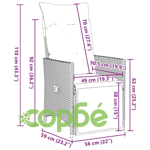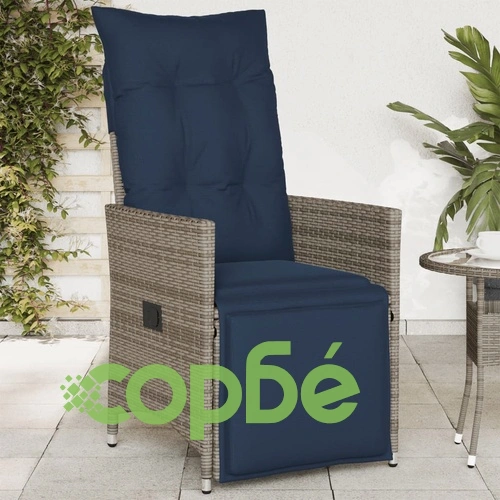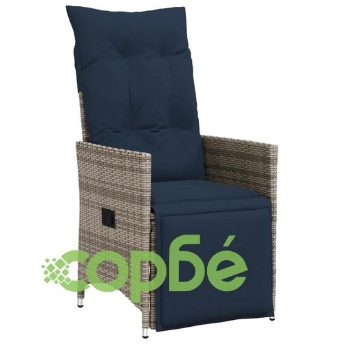 Градински стол с възглавници, сив, полиратан, регулируема облегалка – вземи за 218.00 лв. (111.46€)