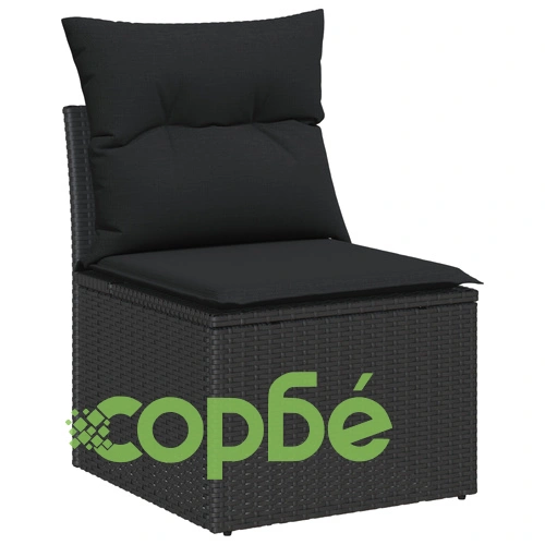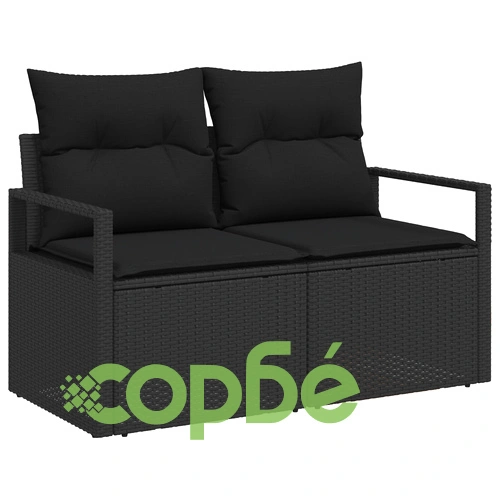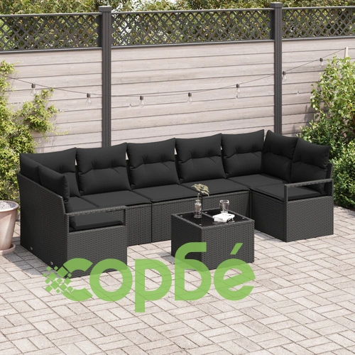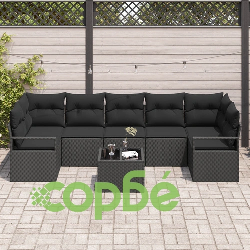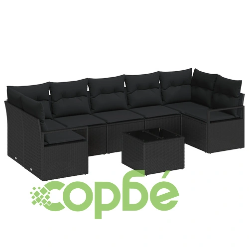 Комплект градински дивани от 8 части с възглавници от черен полиратан – промо цена 1,058.00 лв. (540.95€)